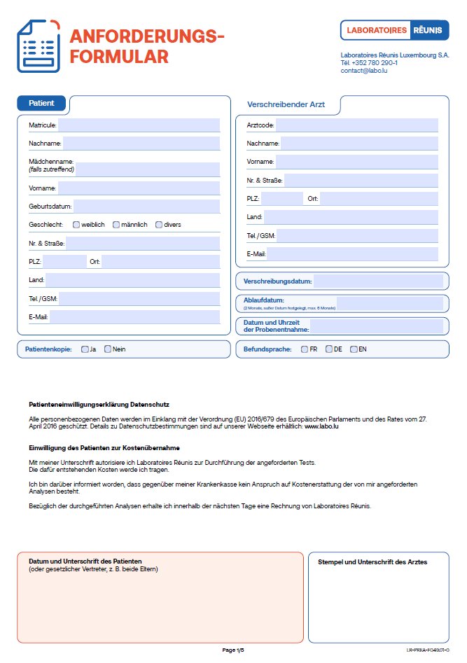 Genetik Anforderungsformular und Einverständniserklärung