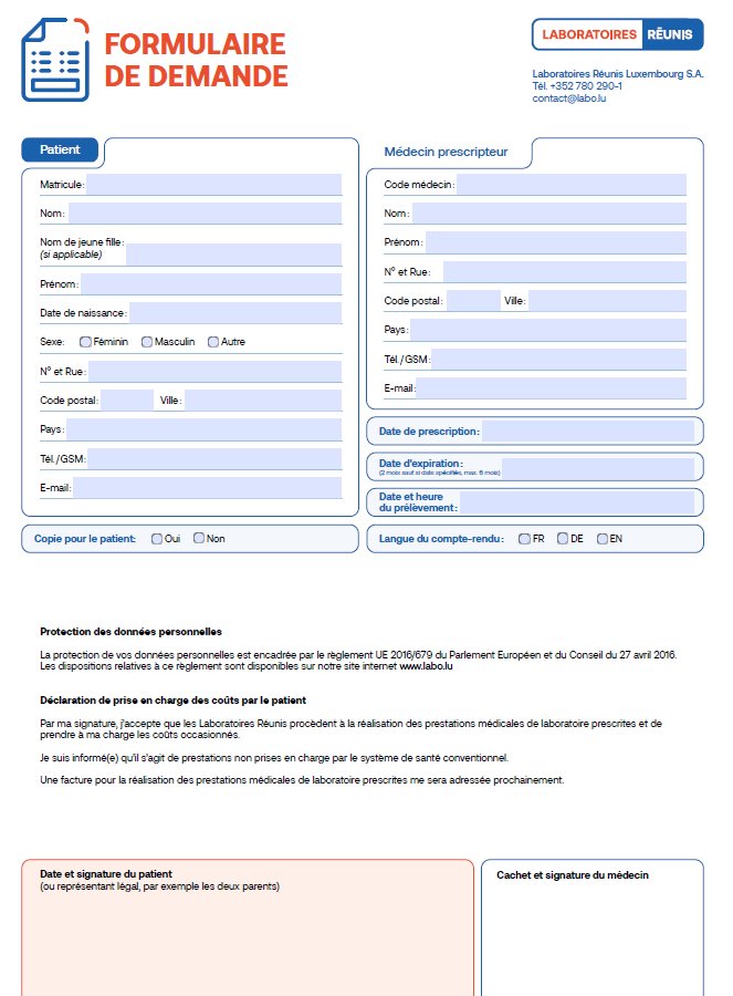 Génétique - Formulaire de demande et consentement